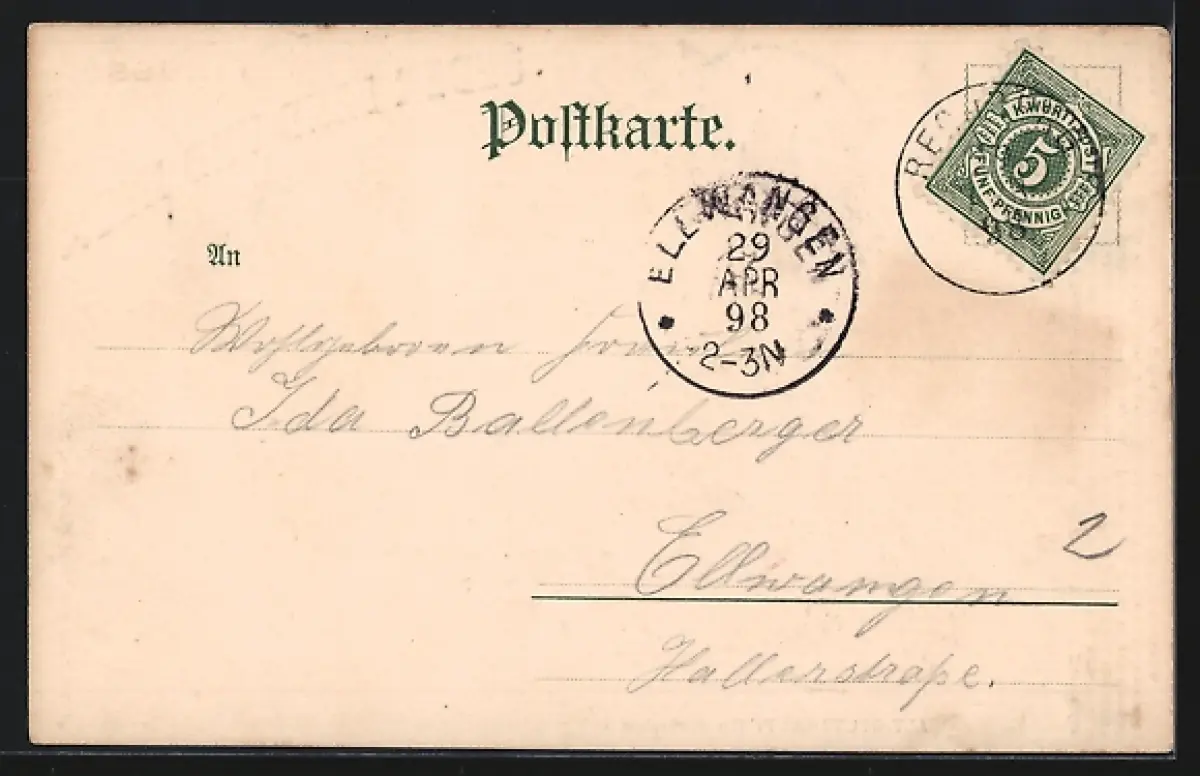 alte Ansichtskarte, gelaufen 1898, guter Zustand