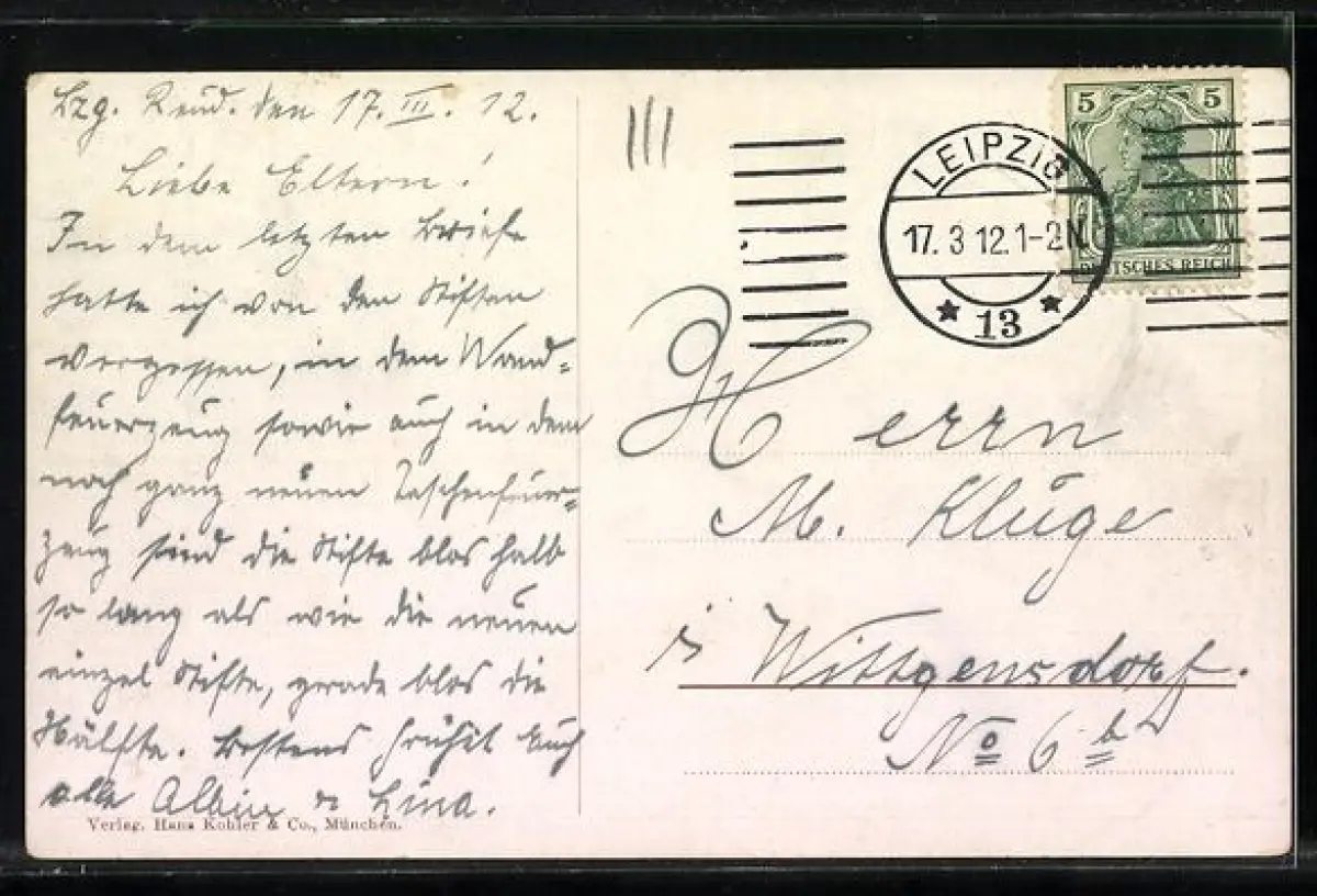 gelaufen 1912, Bugspur diag. li. oben, guter Zustand