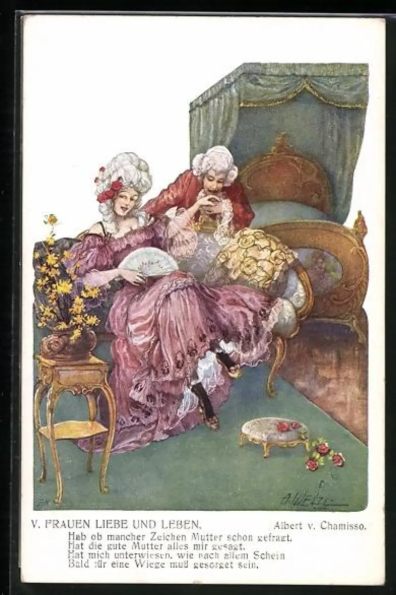 Künstler-AK T. Welzl: Frauen Liebe und Leben V., Paar aus dem Barock