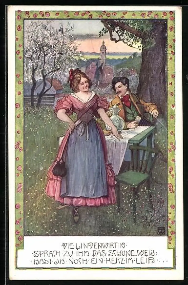 Künstler-AK T.Welzl: Die Lindenwirtin Sprach zu ihm das schöne Weib: Hast ja noch ein Herz im Leib`