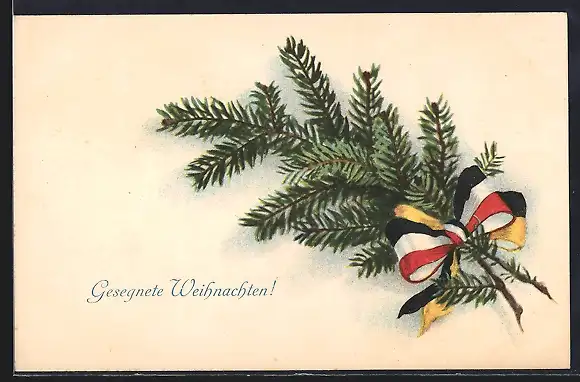 Künstler-AK Tannenzweig mit Schleife der Reichsfahne und Österreichischen Fahne