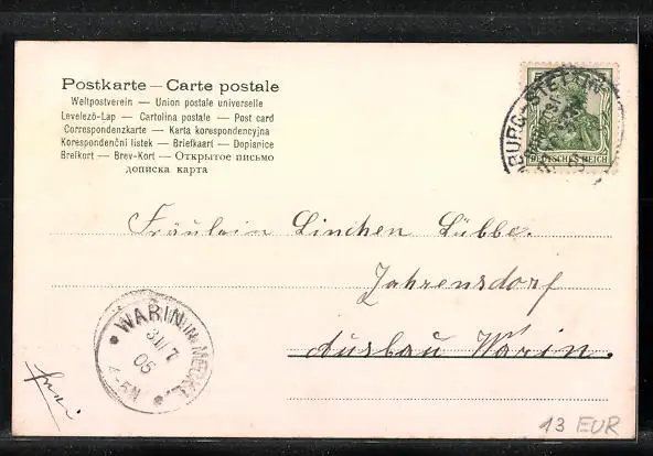 alte Ansichtskarte, gelaufen 1905, guter Zustand