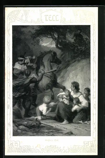 Künstler-AK Theo Stroefer Serie 467, Nr. 7: Gesslers Tod aus dem Märchen Wilhelm Tell