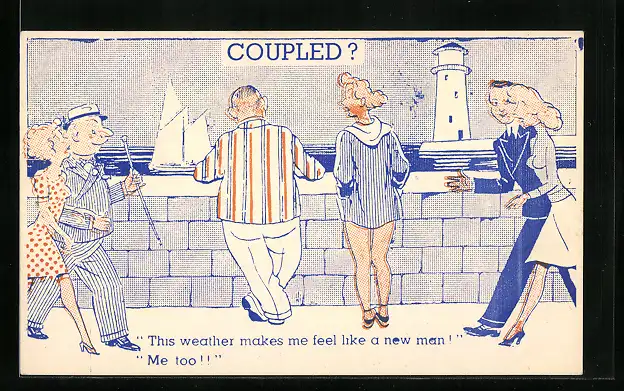 Künstler-AK This weather makes me feel like a new man!, Frau will ihren Mann ersetzen