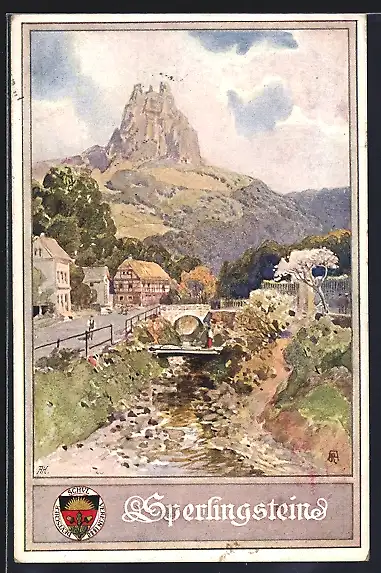Künstler-AK Tichlowitz, Sperlingstein, Deutscher Schulverein