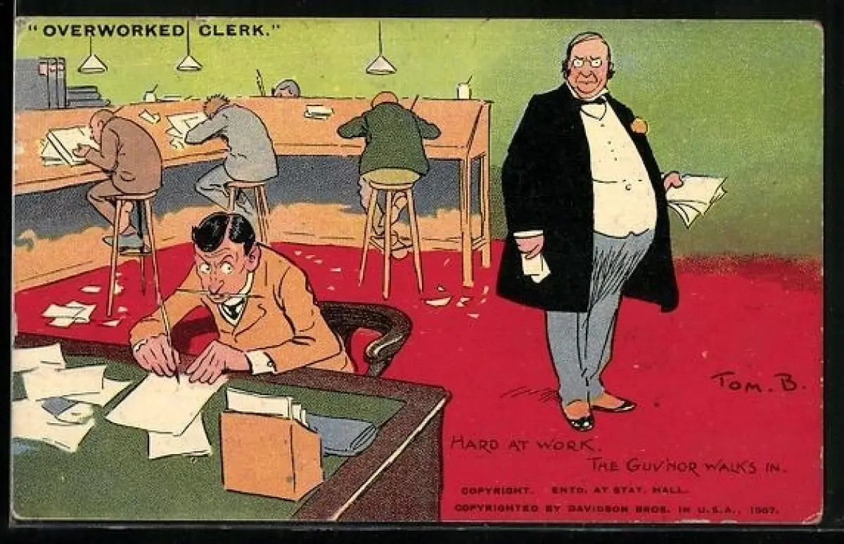 Künstler-AK Tom Browne: Chef beobachtet überarbeiteten Angestellten