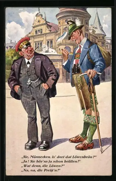 Künstler-AK Tourist fragt nach dem Weg zum Löwenbräu