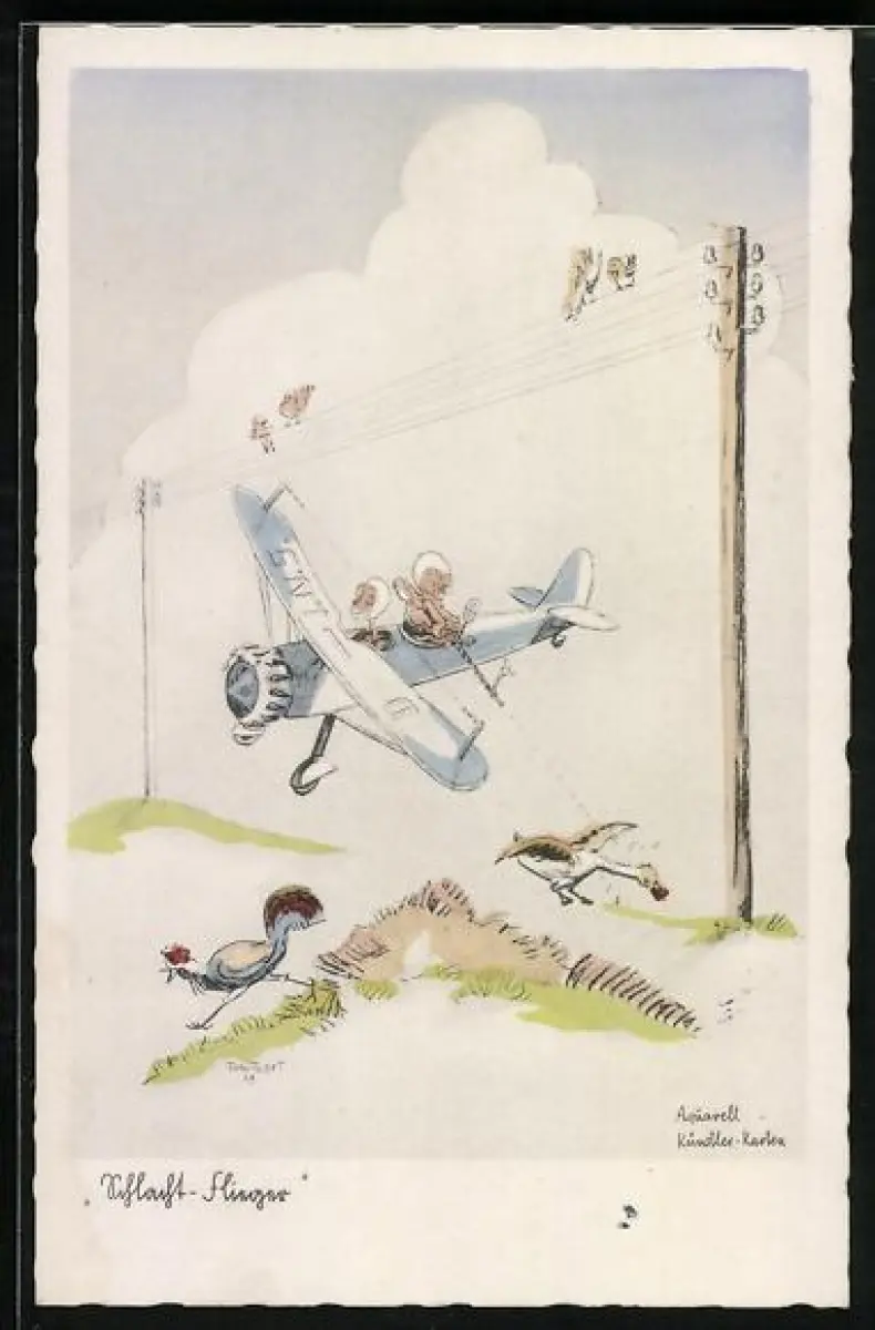 Künstler-AK Trautloft: Schlachtflieger, Scherz