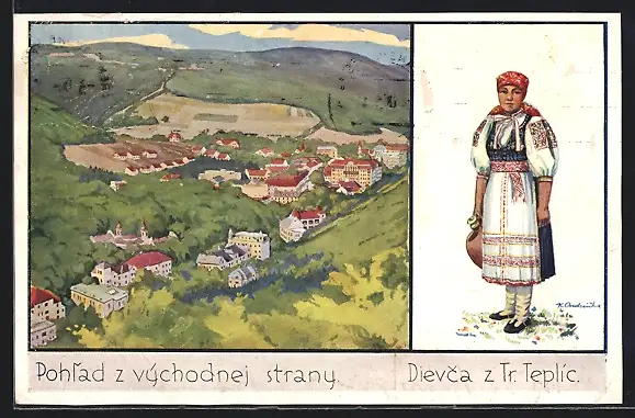 Künstler-AK Trencenteplic, Pohlad z vychodnej strany