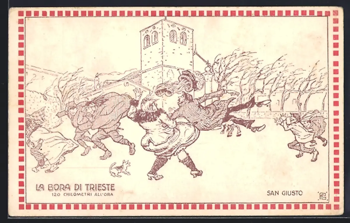 Künstler-AK Trieste, La Bora, San Giusto, Unwetter