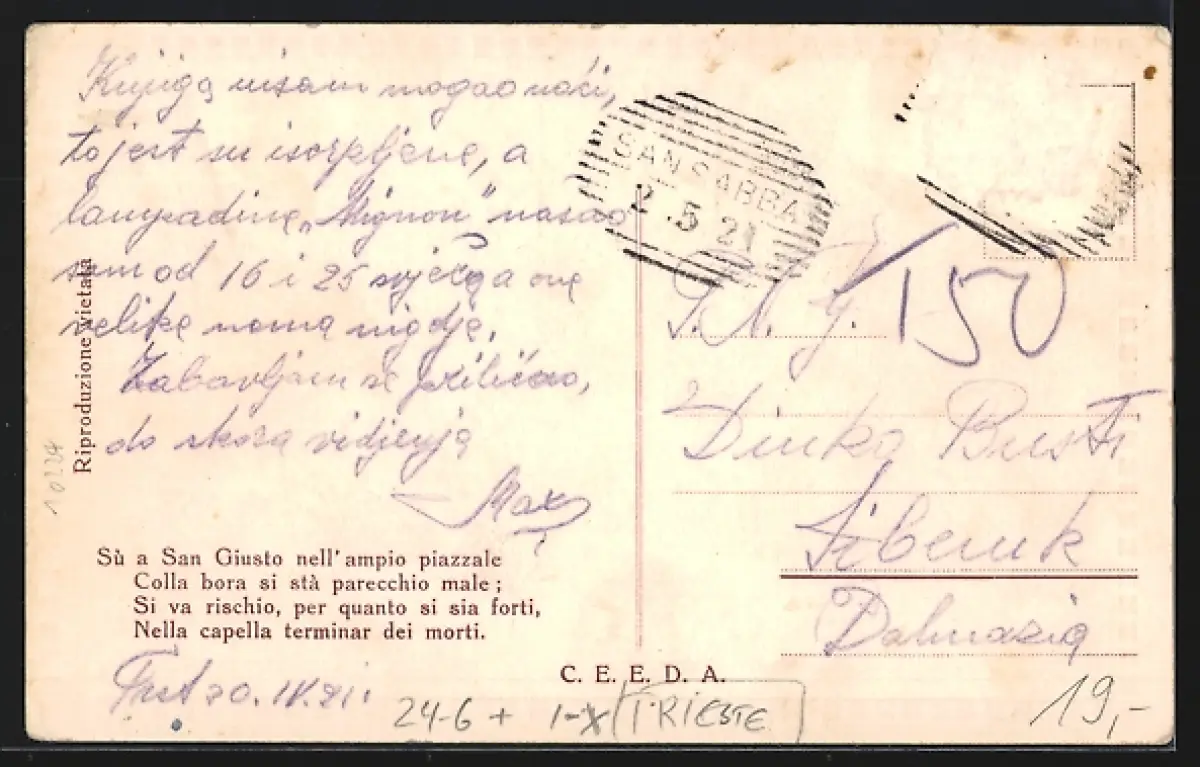 alte Ansichtskarte, gelaufen, Briefmarke entfernt, guter Zustand