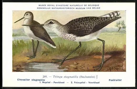 Künstler-AK Tringa stagnatilis, Chevalier stagnatile, Poelruiter