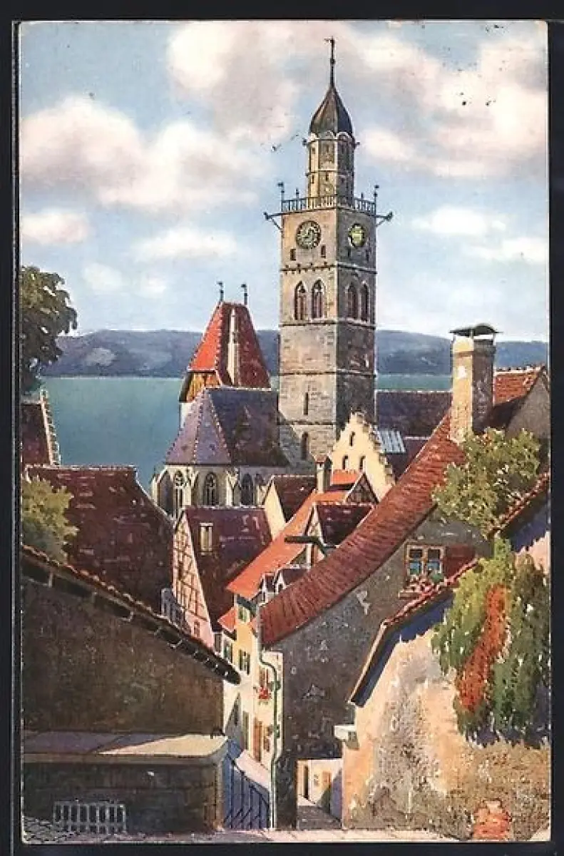 Künstler-AK Ueberlingen / Bodensee, Blick von der Luziengasse aus