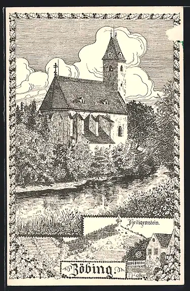 Künstler-AK Ulf Seidl: Zöbing im Kamptal, Pfarrkirche