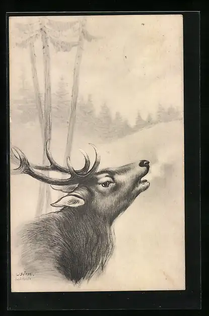 Künstler-AK Ulrich Weber: Röhrender Hirsch