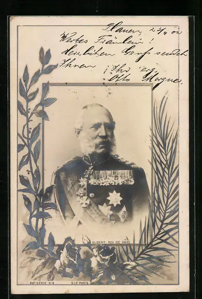 Künstler-AK Umranktes Portrait: Albert von Sachsen in Uniform