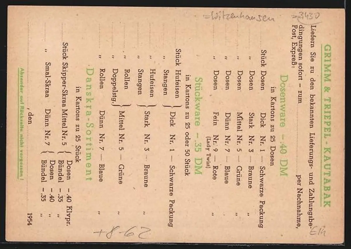 Künstler-AK Unterrieden /Werra, Grimm & Triepel Kautabak- und Zigarrenfabrik, Älterer Herr mit Zylinderhut