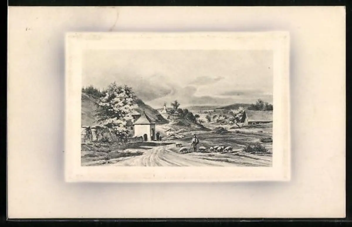 Künstler-AK V.K., Vienne Nr. 4072: Hirte mit Schafen in Landschaft