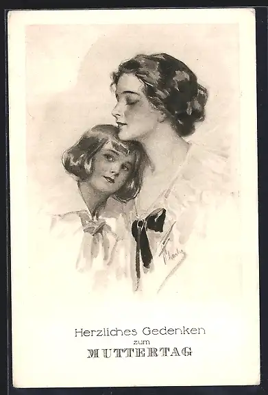 Künstler-AK V.K., Vienne Nr.: 70 /1 Mutter und Tochter in inniger Pose, Gedenken zum Muttertag