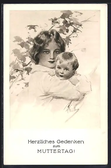 Künstler-AK V.K., Vienne Nr.: 70 /2 Mutter mit Kind im Arm, Gedenken zum Muttertag