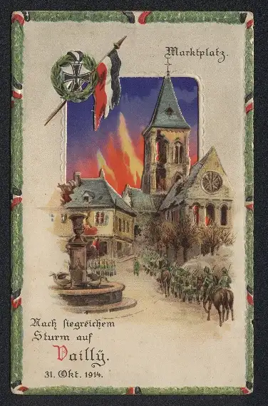 Künstler-AK Vailly, Nach siegreichem Sturm auf dem Marktplatz, Halt gegen das Licht