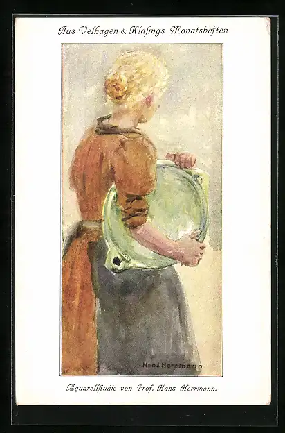 Künstler-AK Velhagen & Klasings Monatshefte, blondes Mädchen mit Tablett