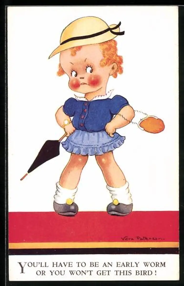 Künstler-AK Vera Paterson: You`ll have to be an early worm..., garstiges Mädchen
