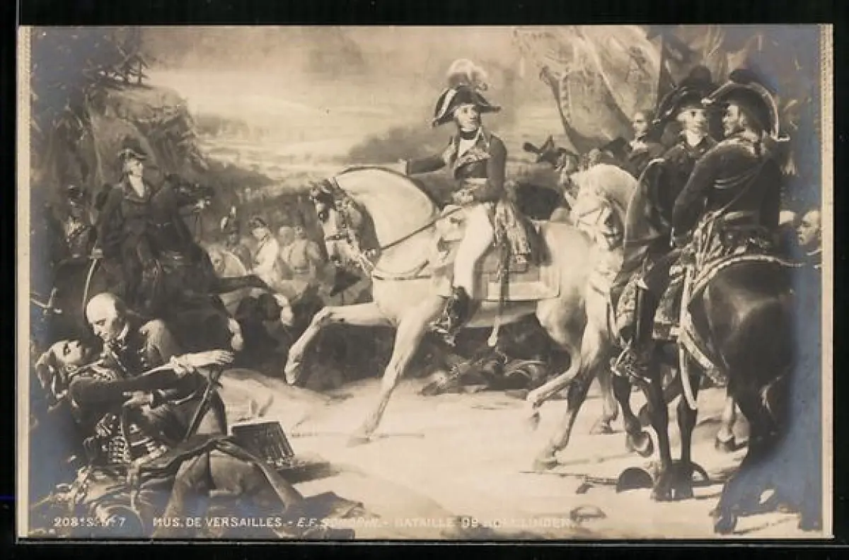Künstler-AK Versailles, Musée de Versailles, Napoleon zu Pferde bei der Schlacht von Hohenlinden