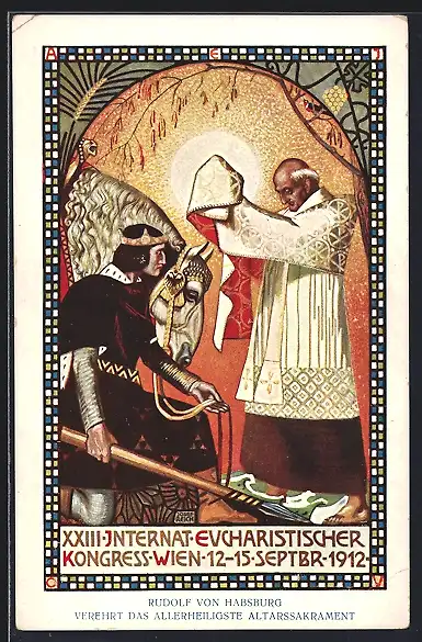 Künstler-AK Vienna, XXIII. Internat. Eucharisticus Congress 1912, Gläubiger und Ritter im Gebet