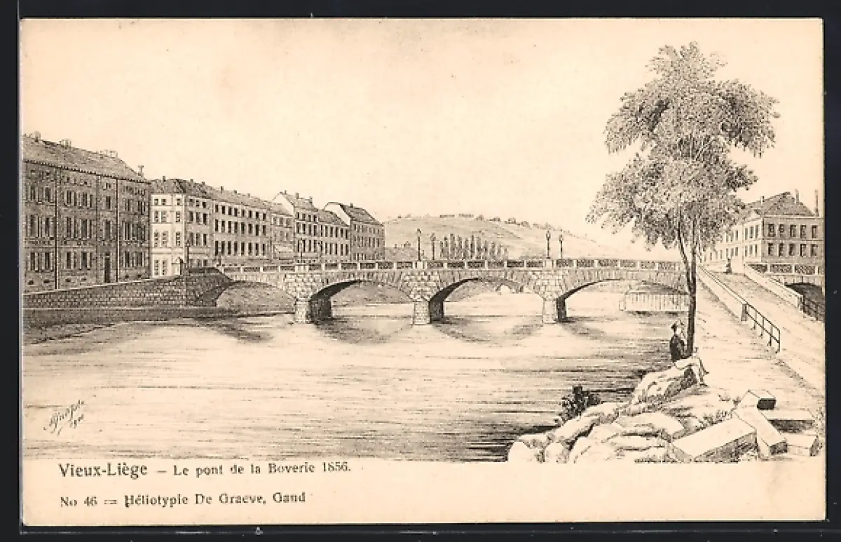 Künstler-AK Vieux-Liège, Le pont de la Boverie 1856