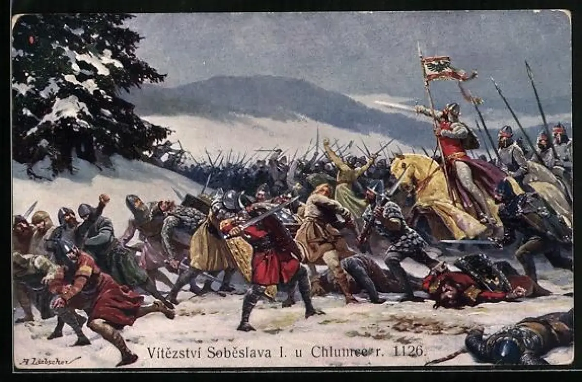 Künstler-AK Vítezství Sobeslava I. u Chlumsee r. 1126