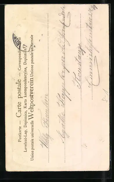 alte Ansichtskarte, gelaufen, Eckknick re. unten, Stecknadelloch re. oben, guter Zustand