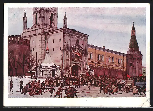 Künstler-AK Vor dem Einzug in den Kreml, Revolution 1917