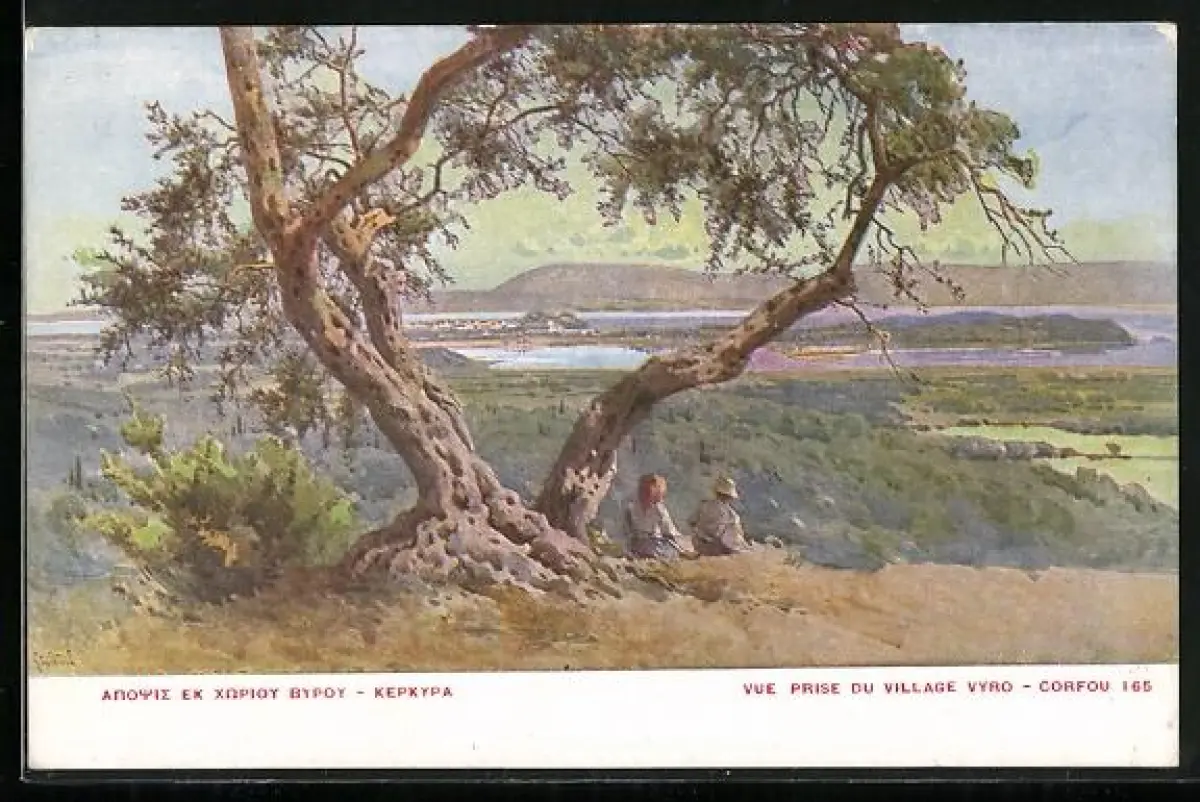 Künstler-AK Vyro /Corfou, Vue Prise du village Vyro