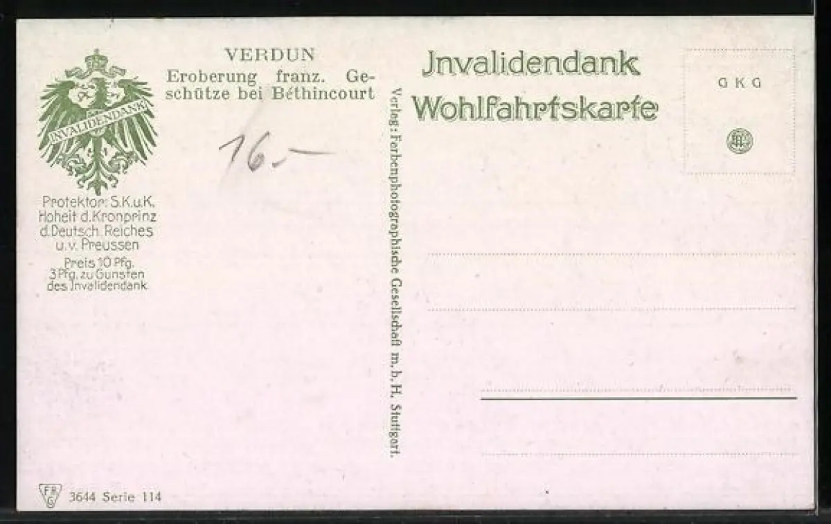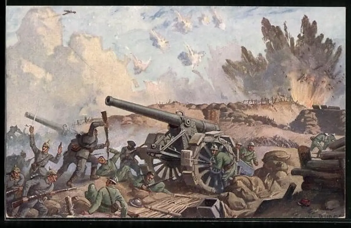 Künstler-AK W. Bürger: Eroberung französischer Geschütze bei Béthincourt während der Schlacht von Verdun