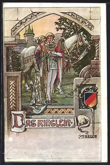 Künstler-AK W.Braun: Das Riglein, Edelmann steckt seiner Liebsten einen Ring an