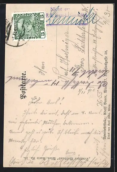 alte Ansichtskarte, gelaufen 1910, guter Zustand