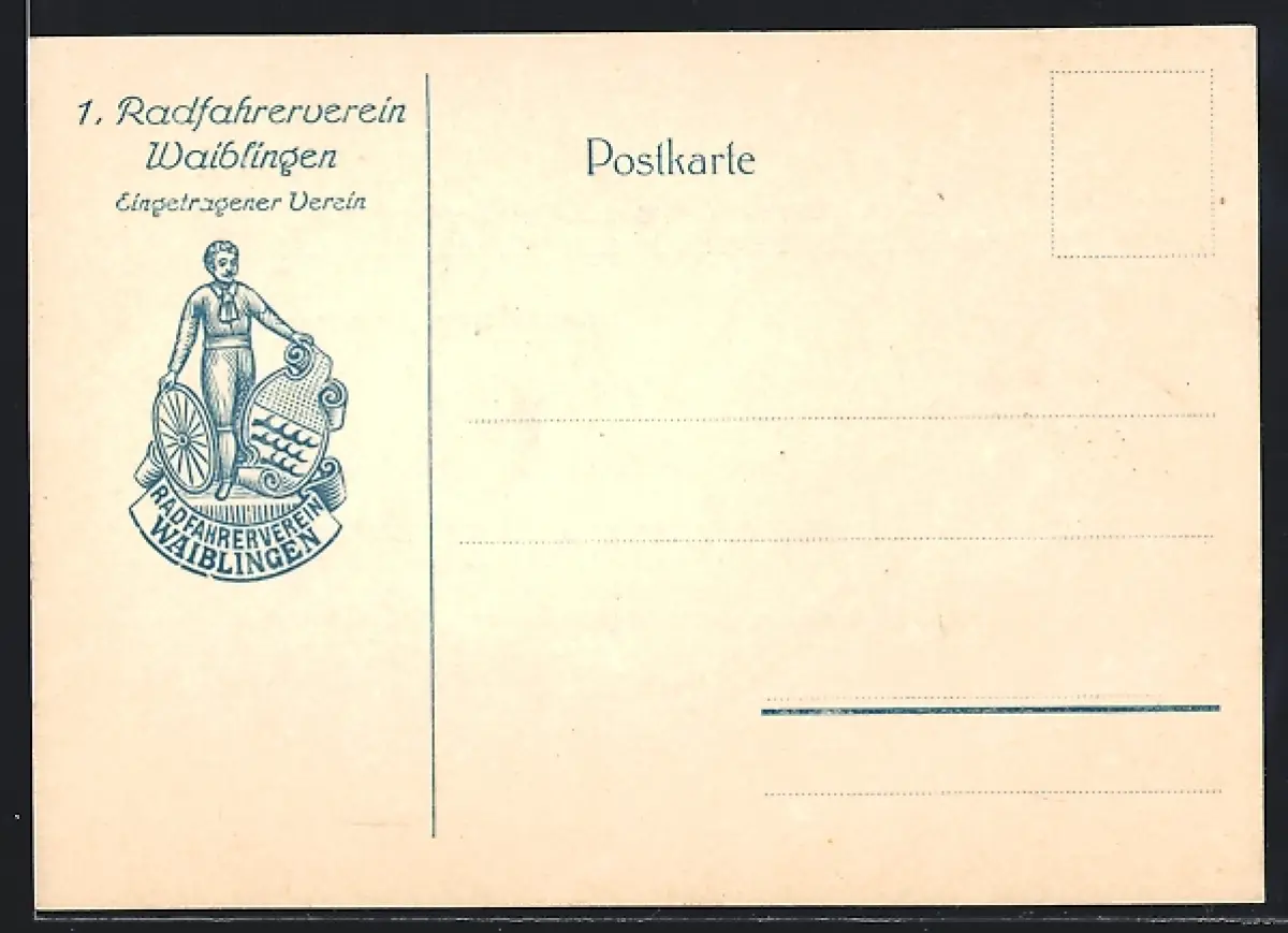 Künstler-AK Waiblingen, 1. Radfahrerverein Waiblingen, Sportler mit Wappen