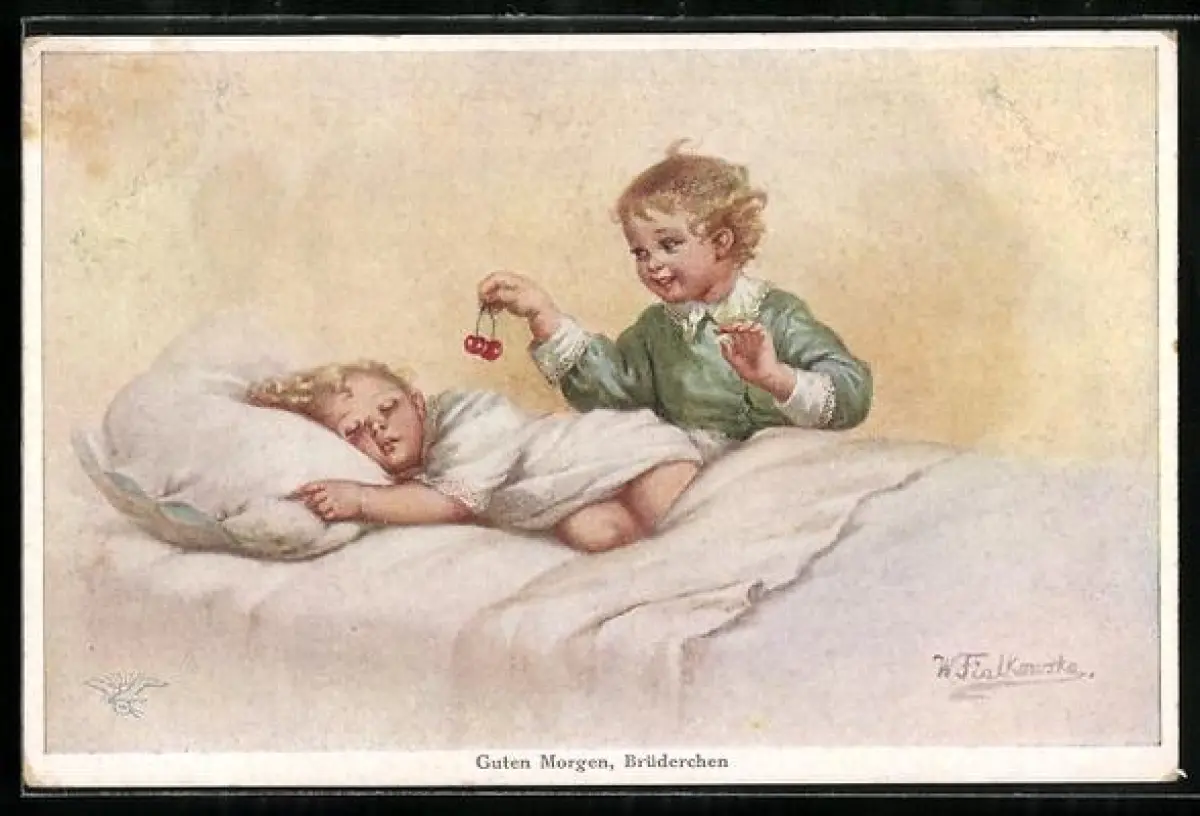 Künstler-AK Wally Fialkowska: Guten Morgen Brüderchen