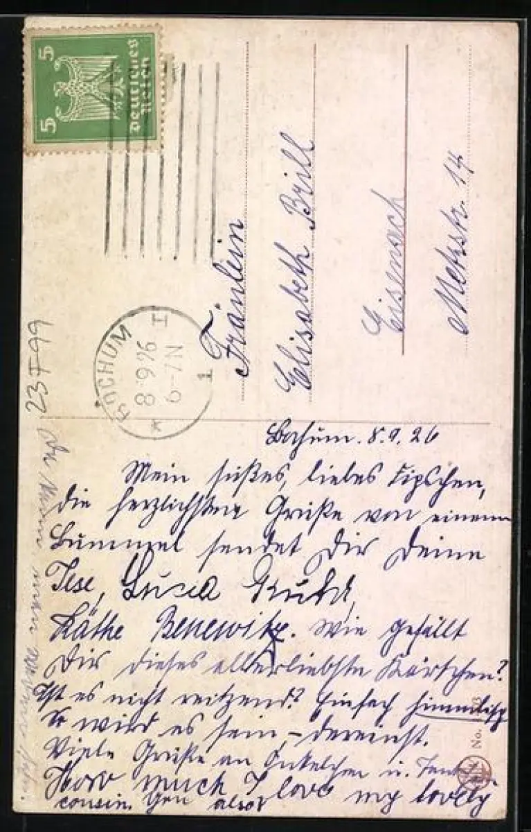 alte Ansichtskarte, gelaufen 1926, Stempelspur, guter Zustand