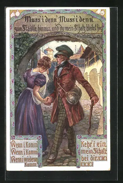 Künstler-AK Wanderer verabschiedet sich von seiner Geliebten