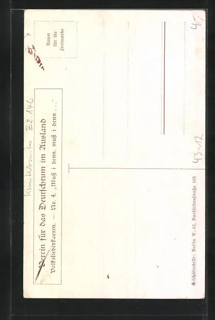 Personenbezogene Daten auf der Rückseite der Karte wurden durch blauen Textmarker unkenntlich gemacht. Die blauen Stellen sind auf die Vorderseite durchgeweicht und wirken sich negativ auf das Postkartenfoto aus