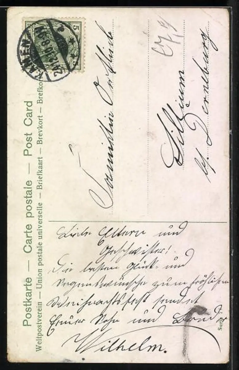 alte Ansichtskarte, gelaufen 1910, Eckknicke li. und re. unten, guter Zustand