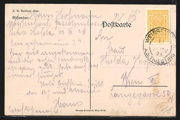 alte Ansichtskarte, gelaufen 1924, guter Zustand
