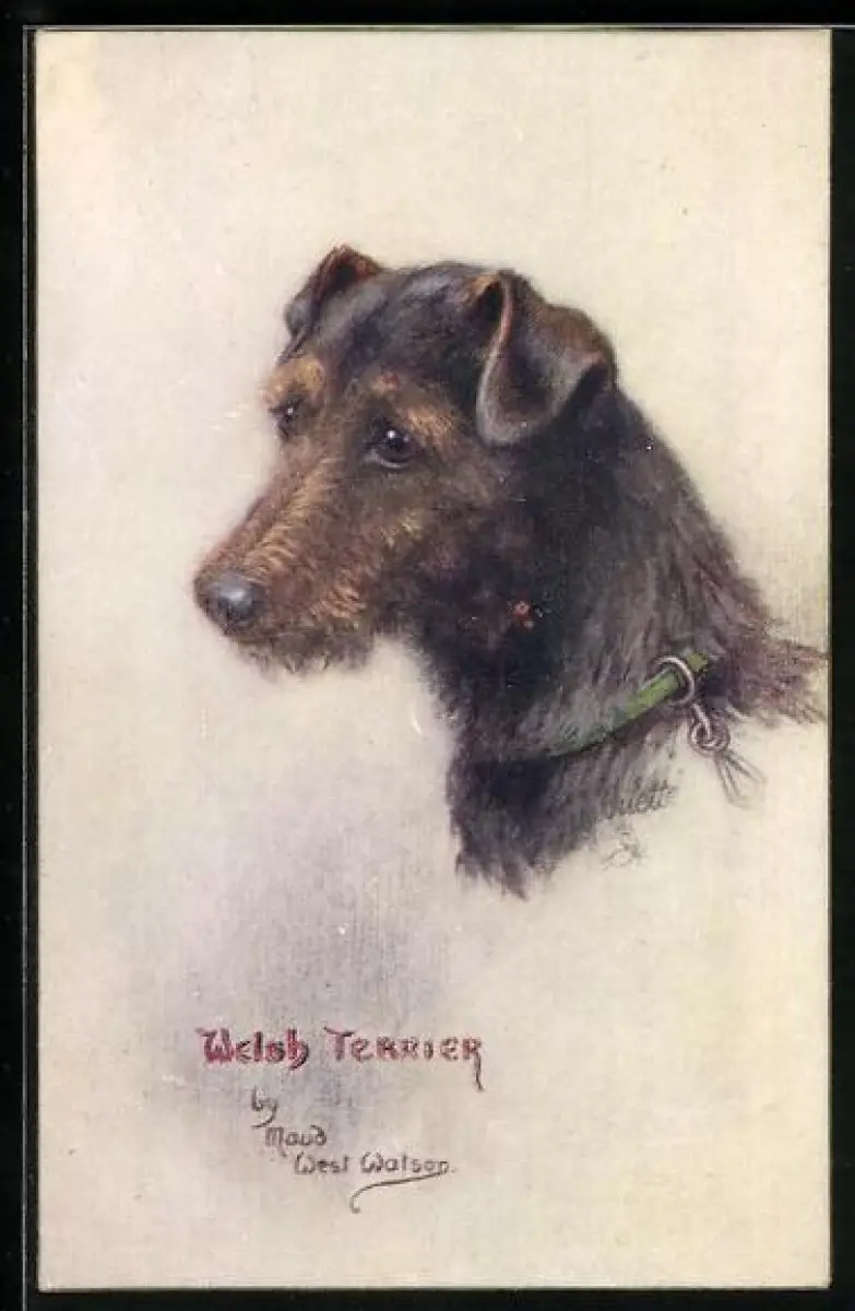 Künstler-AK Welsh Terrier, Hund mit Halsleine