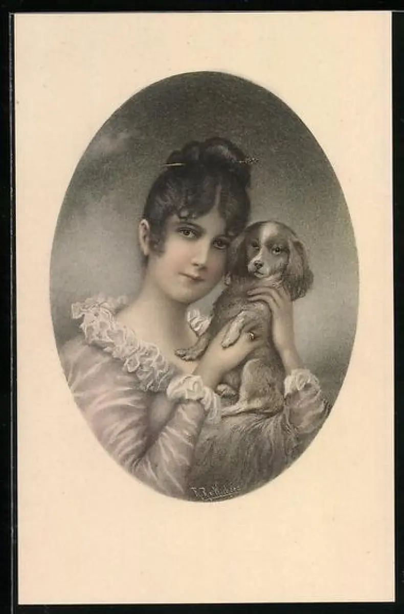 Künstler-AK Wichera: Dame mit Hund auf dem Arm
