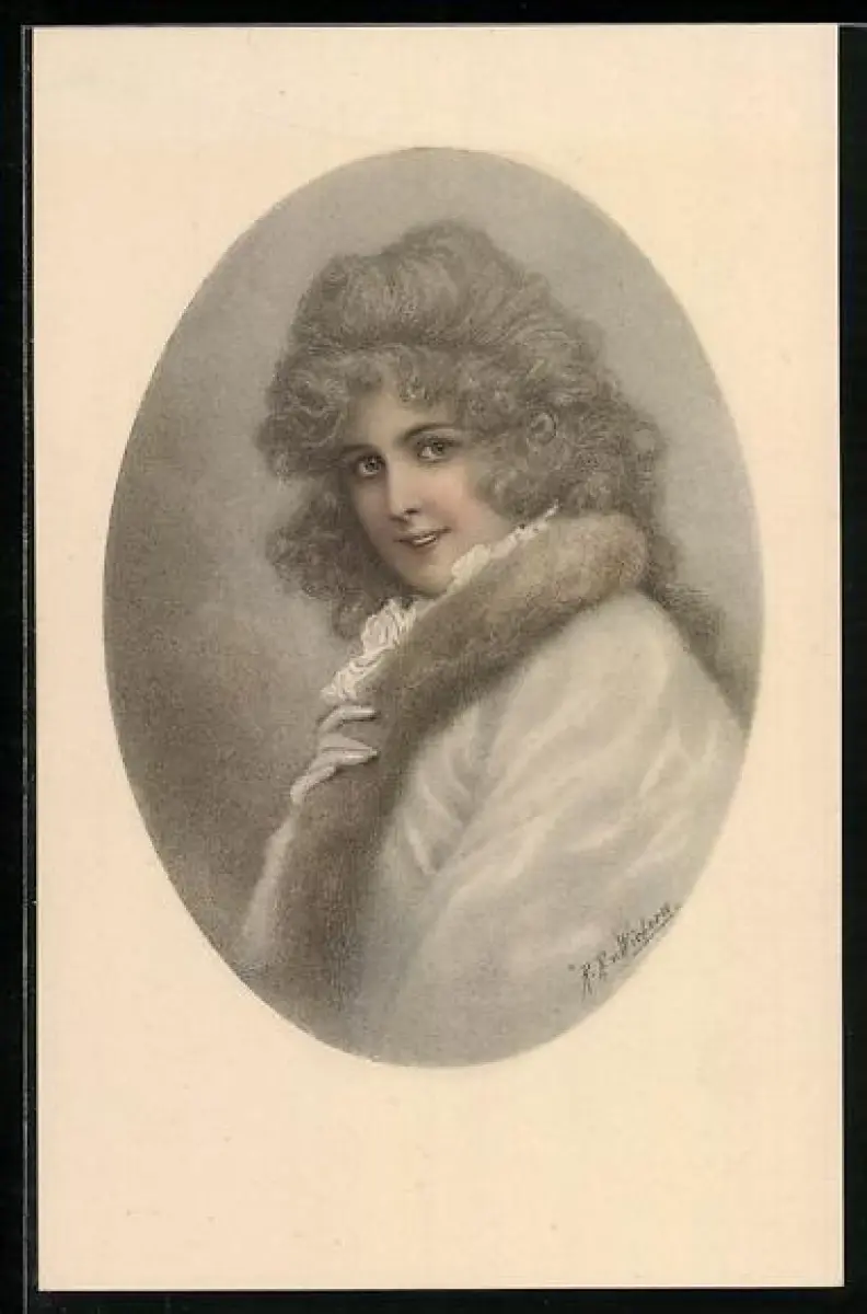 Künstler-AK Wichera: Damenporträt mit Pelzmantel