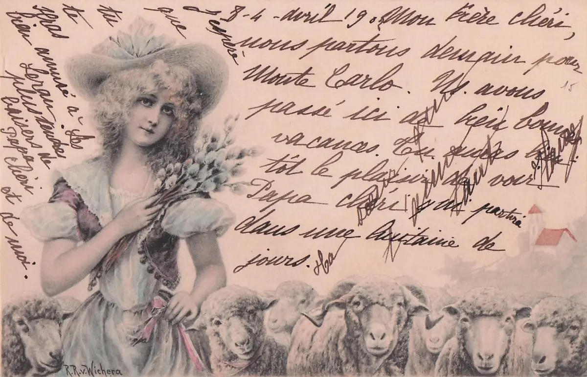 Künstler-AK Wichera, M. Munk Nr., Blondes Mädchen mit Schafen -798700