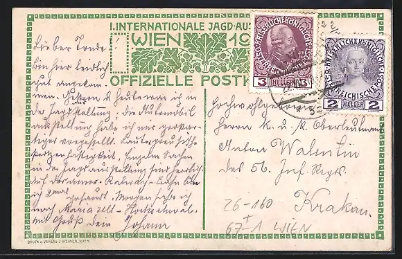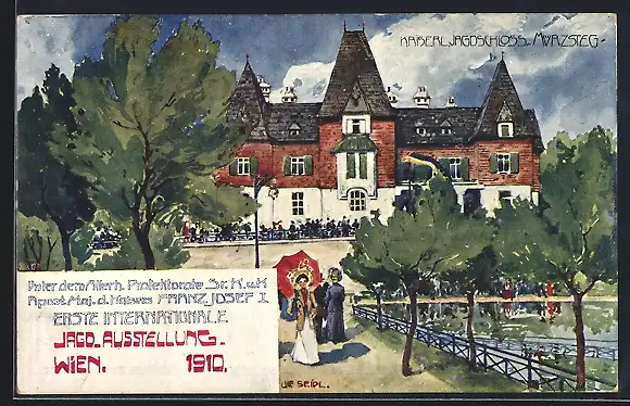 Künstler-AK Wien, 1. Internationale Jagd-Ausstellung 1910, Kaiserliches Jagdschloss Mürzsteg