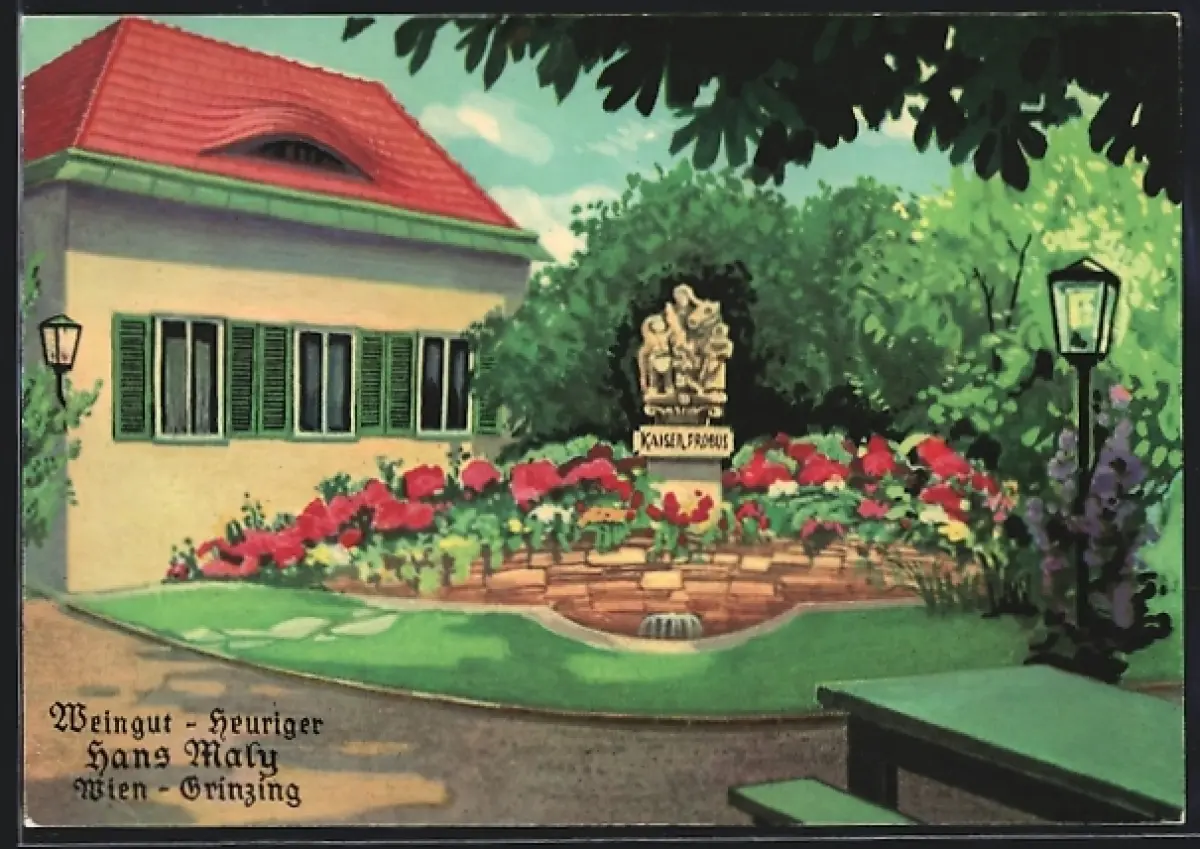 Künstler-AK Wien-Grinzing, Heurigen-Restaurant Hans Maly an der Sandgasse